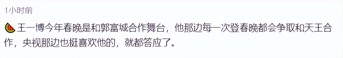 现在,大家都很好奇,王一博会表演什么,如果不出意外的话,肯定是歌曲,根据知情人士透露,王一博的春晚舞台将搭档“天王”级歌手,这位歌手就是郭富城。